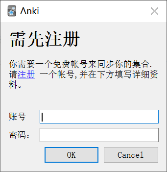 重启 Anki,点击同步,在打开的对话框中输入你在前面填写的用户名和密码就可以同步了